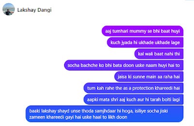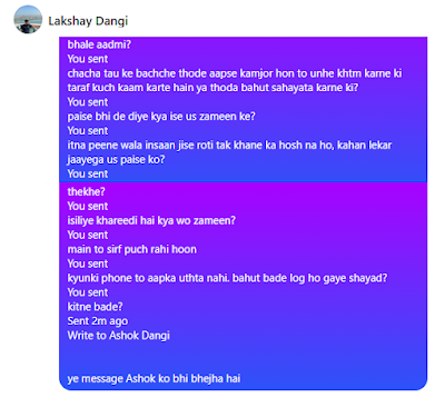 ऐसा ही कुछ अशोक दांगी और लक्ष्य दांगी के FB पर मैसेज भी होता है।